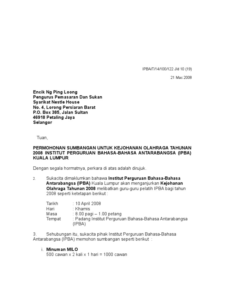 Contoh Surat Mohon Sumbangan Milo Otosection